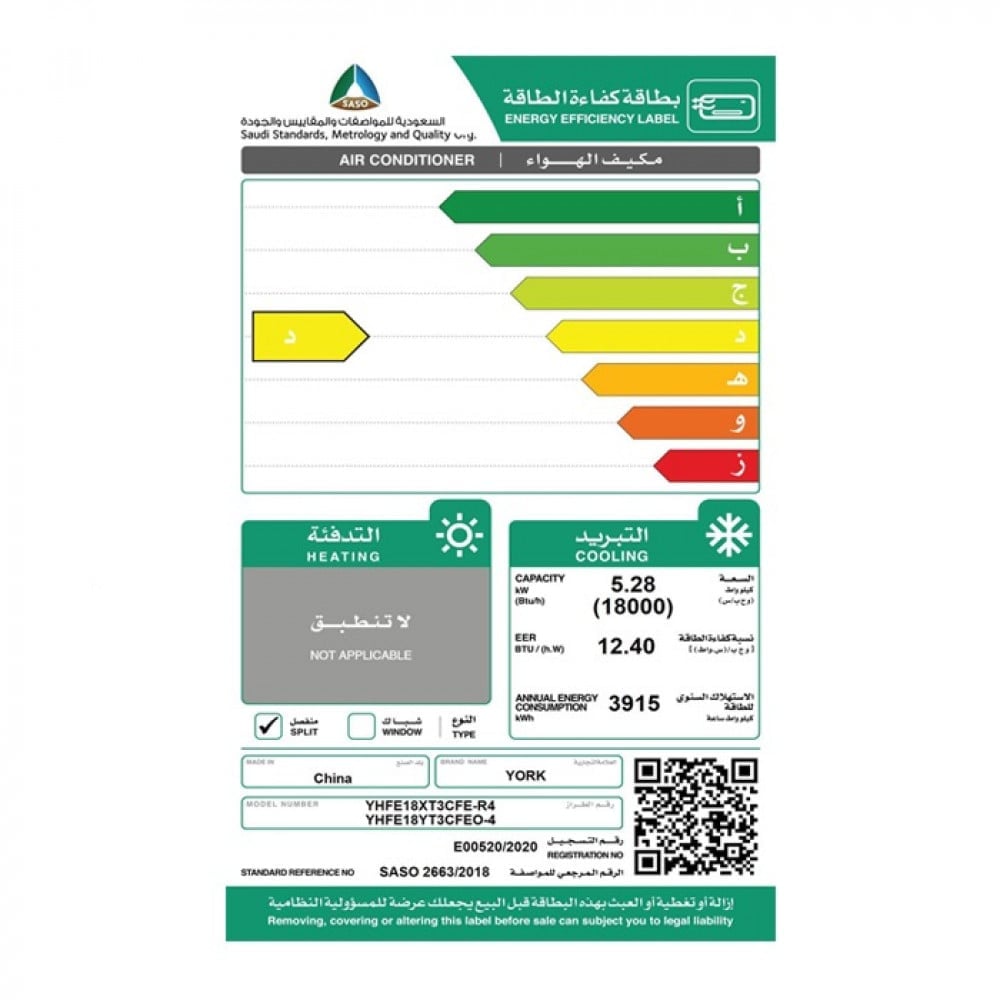اسبليت يورك ايسبيرج موديل 18 بارد YHFE18XT3CFP-R5