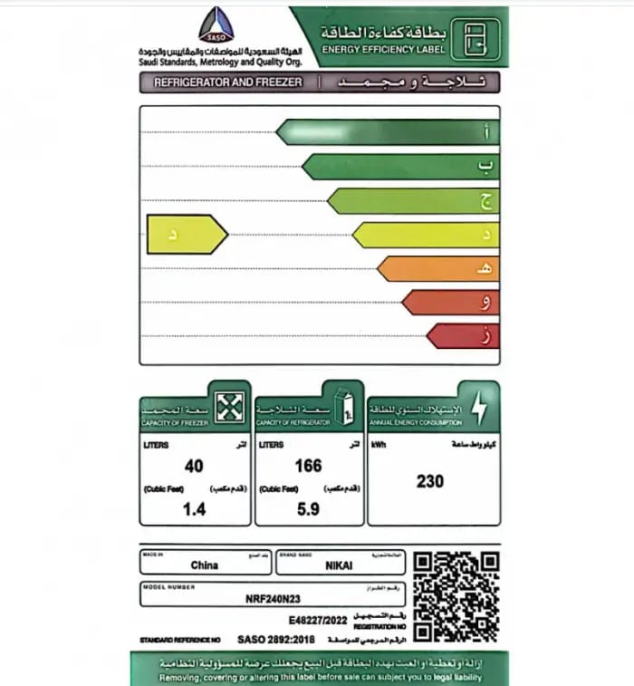ثلاجة نيكاي بابين 7.2 قدم ديفروست – فضى